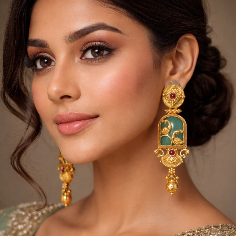 Ideal for bridal wear, classical sarees, silk lehengas, and festive ensembles. This set pairs beautifully with Kanjeevaram, Banarasi, and heavily embroidered outfits for a royal and devotional aesthetic.
