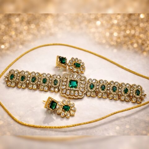 Perfect for weddings, festive gatherings, and special celebrations, this necklace set pairs beautifully with Nauvari, silk sarees, Banarasi drapes, contemporary lehengas, and embroidered ethnic outfits. Style it with sleek buns or soft waves to let the necklace stand out as the focal piece.