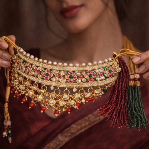 Ideal for weddings, festive celebrations, and evening events, this necklace set pairs effortlessly with silk sarees, embroidered lehengas, and rich ethnic ensembles. It also complements fusion outfits for a polished, standout appearance.