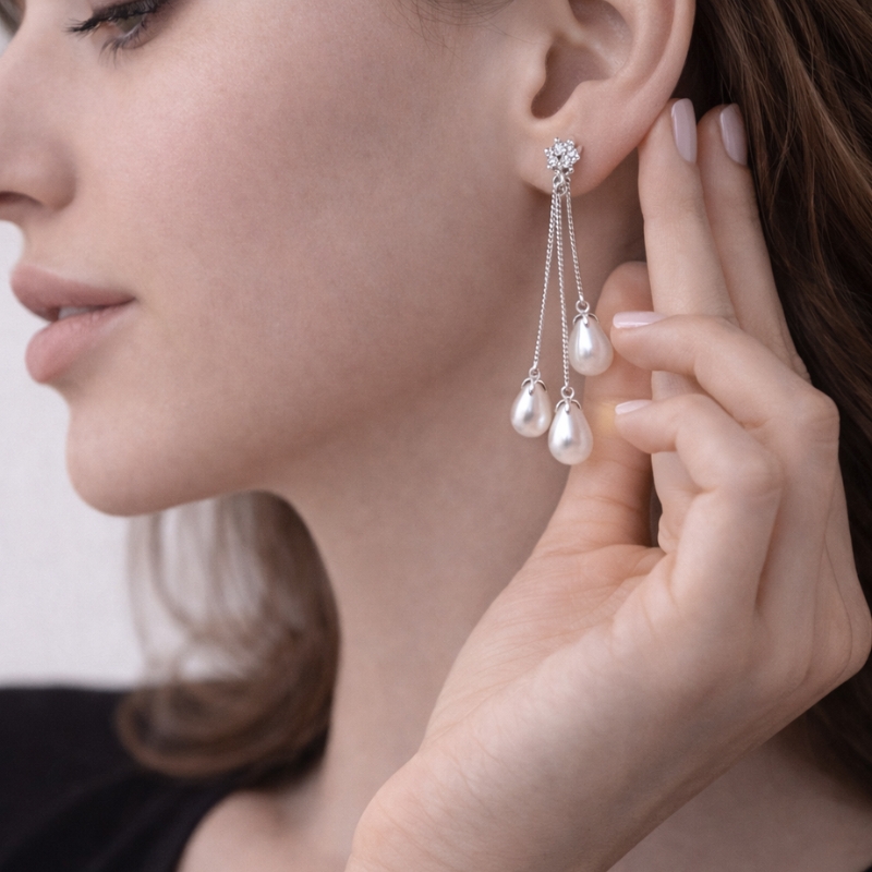 These elegant pearl drop earrings pair effortlessly with sarees, evening gowns, festive outfits, and chic everyday looks, adding a refined and graceful touch to your ensemble.